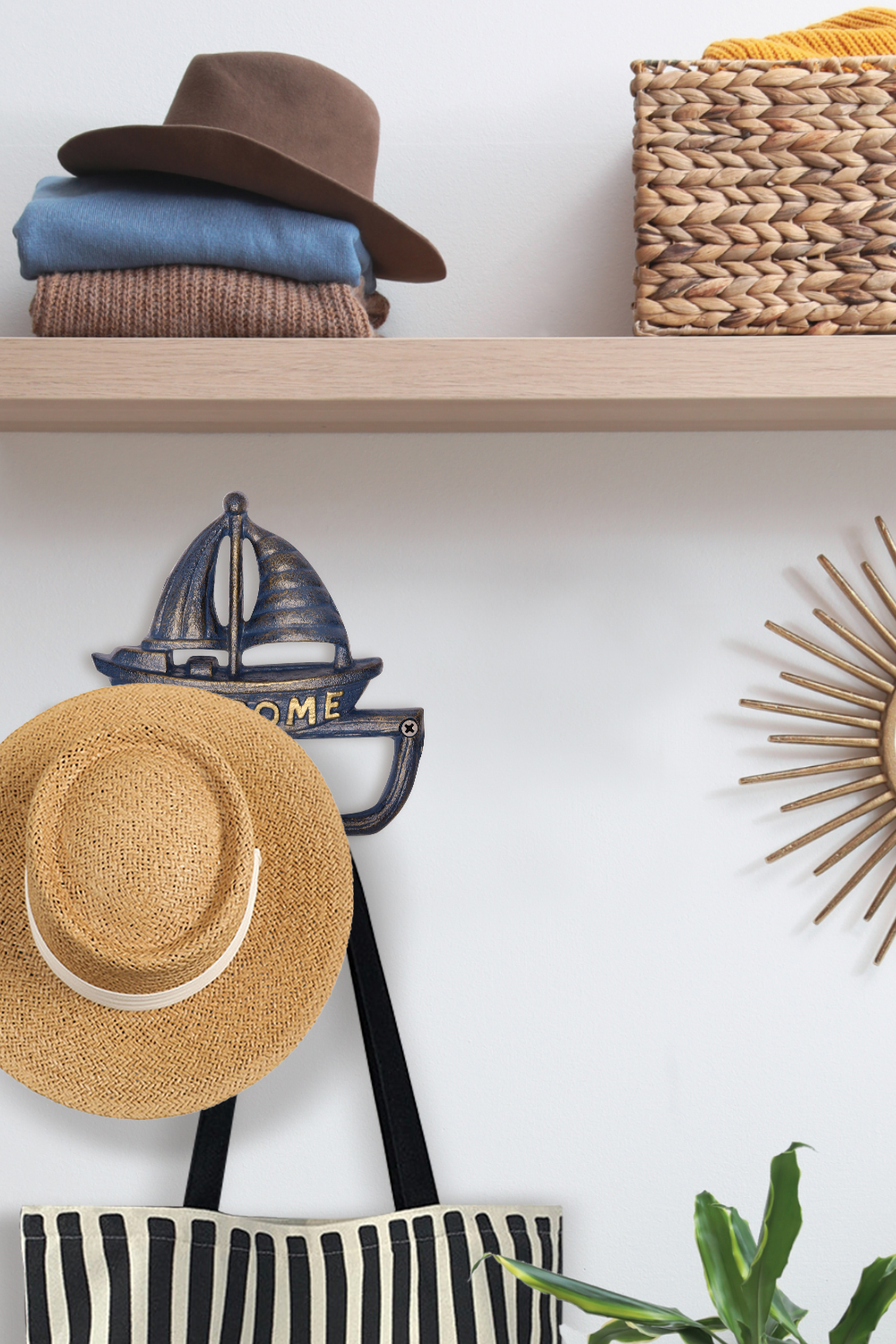 • [Handmade Craftsmanship] Each decorative wall hook features a vintage, hand-painted blue and gold sailboat design. Adding a nautical touch to your entryway's versatile organization.