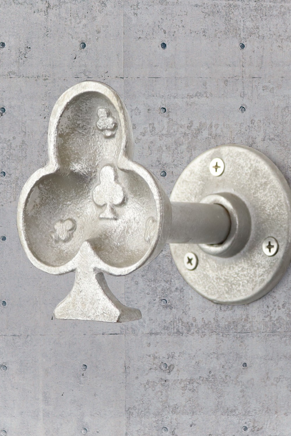 [Measurements] Clubs shape: 3.9"H x 3.39"W, Total length from wall: 4.02". Base diameter: 3.07". Weighs 1.1 lbs. Includes 3 screws & expansion anchors for easy installation.