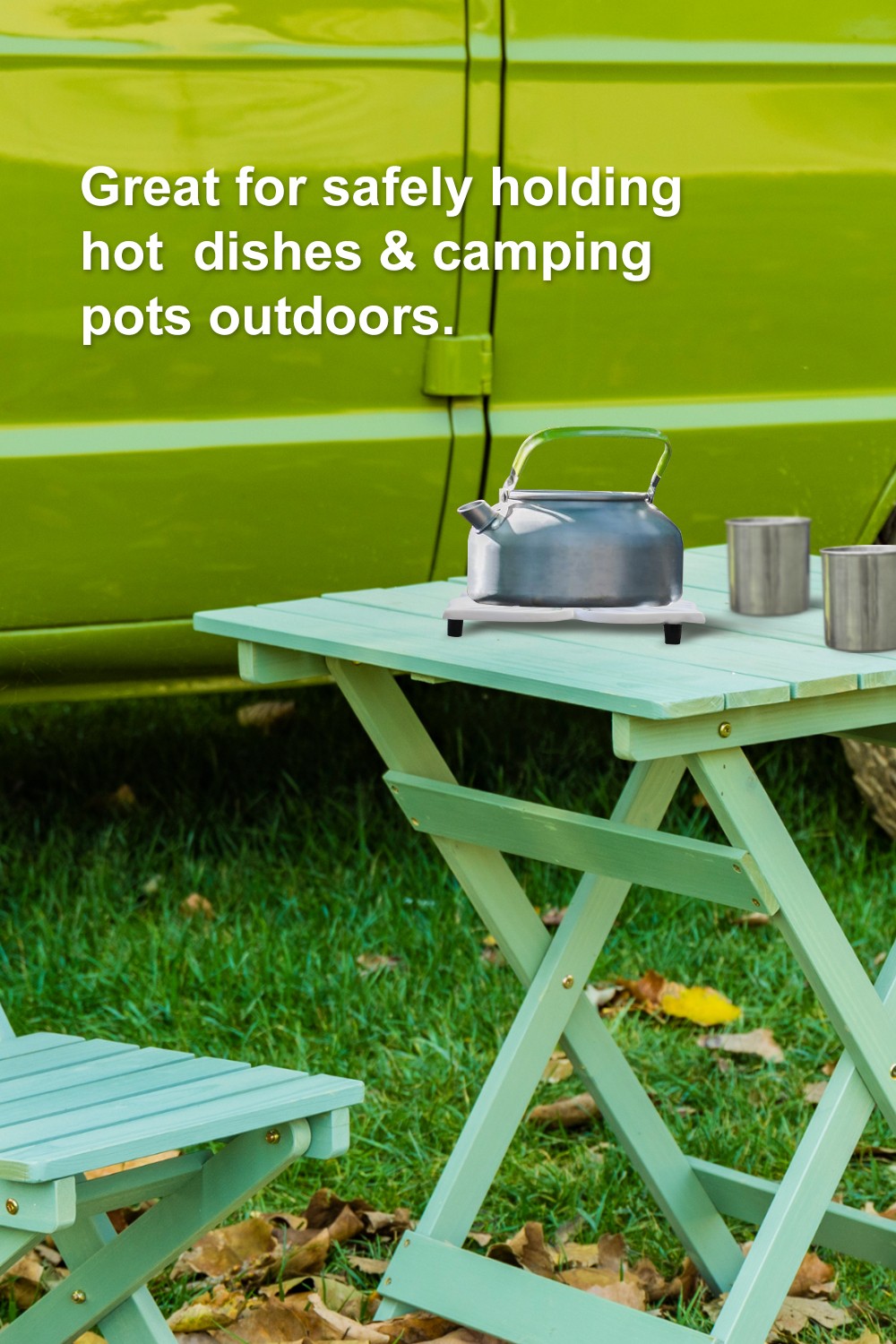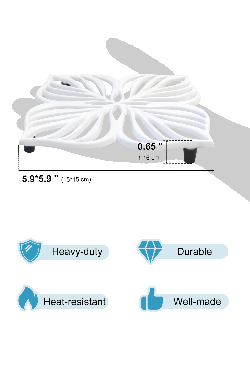 • [Durable and Heat Resistant] HomeHand cast iron trivet safeguards surfaces from heat, with a convenient size of 5.9" x 5.9", suitable for any table. It is ideal for holding hot dishes, camping pots, plates, and coffee pots.